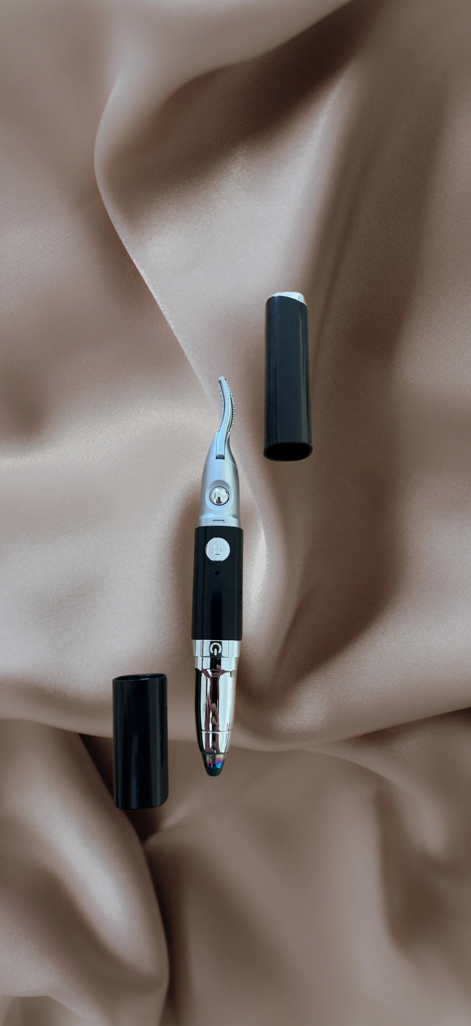 Ein elegantes 2-in-1-Gerät, das deine Wimpern sanft mit Wärme formt und gleichzeitig feine Gesichtshärchen entfernt – schnell, schmerzfrei und überall anwendbar.